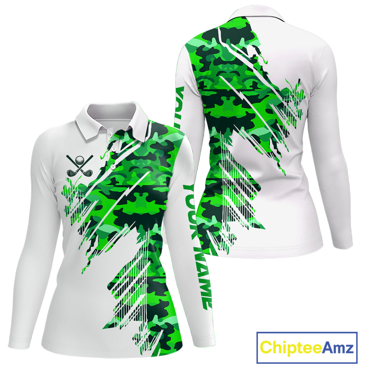 Personalized Women golf polo shirts custom white and green camo ladies golf apparel, golfing gifts NQS10334