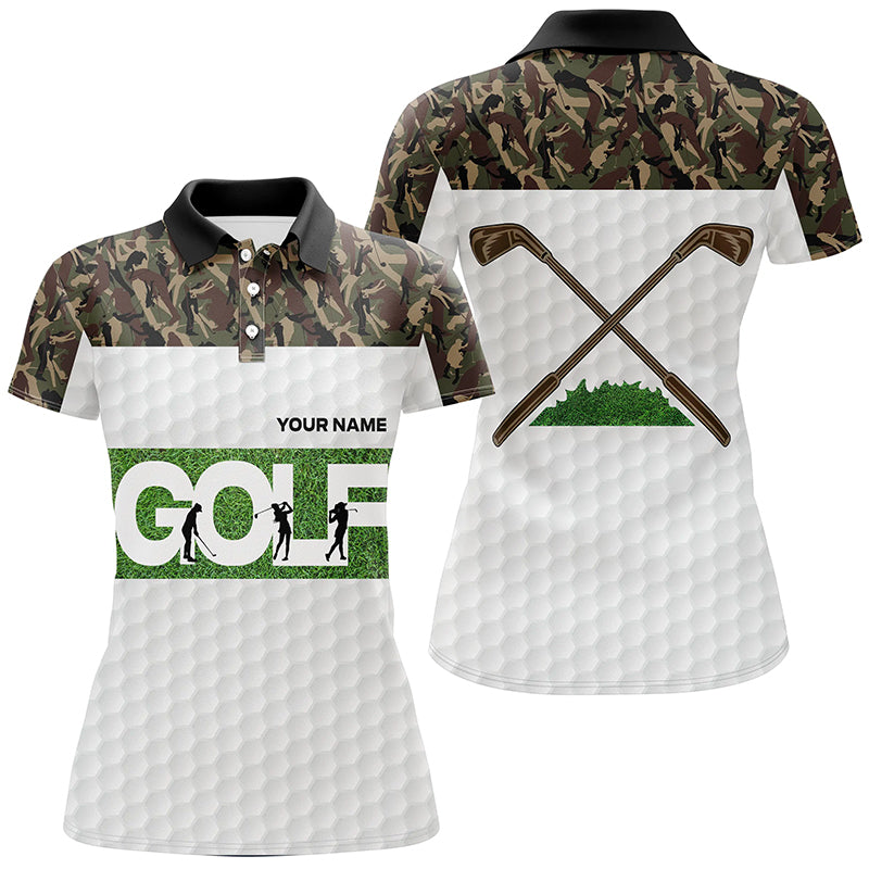 Green Camouflage Womens Golf Polo Shirts Custom Camo Women Golf Tops Personalized Golf Gifts LDT0182