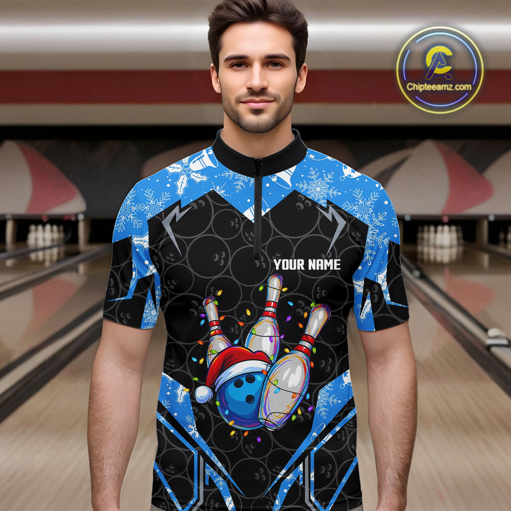 Black Camo Blue Christmas Bowling shirts for men Custom Team bowling jerseys gift for bowlers NQS10966