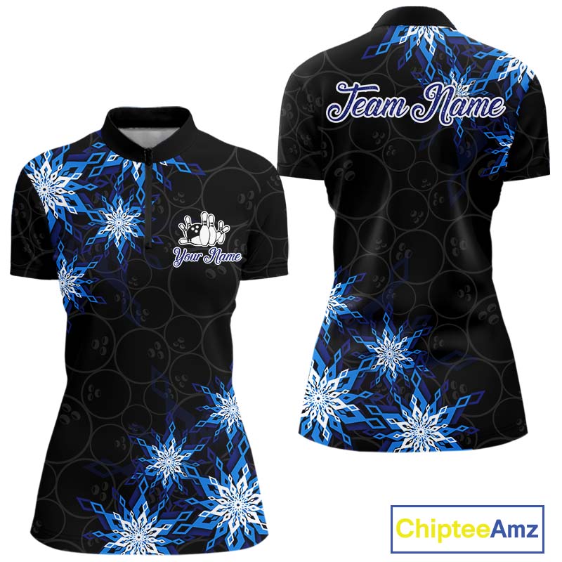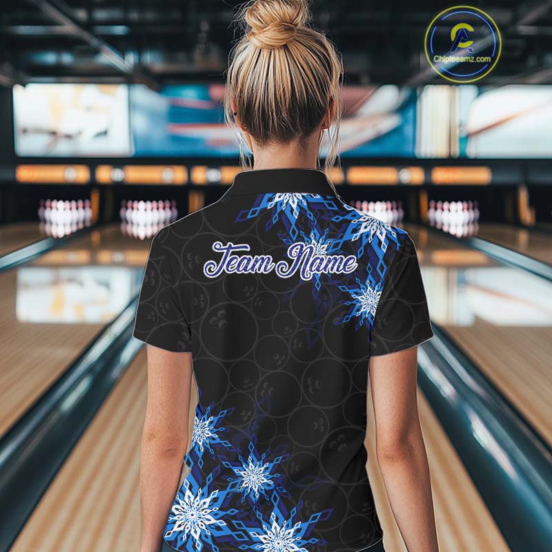 Blue snowflake black camo Christmas Bowling Shirt For Women custom bowling team jersey, bowling gifts NQS11028