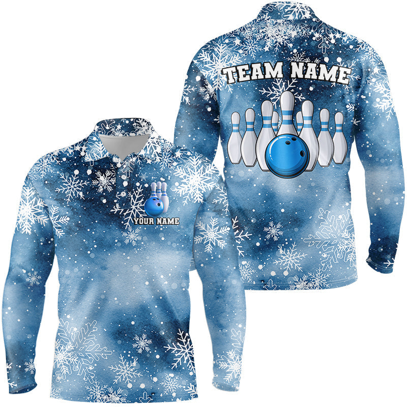 Blue Snowflake Christmas pattern Men's Bowling shirt Custom Christmas Team Bowling League Jersey NQS8854