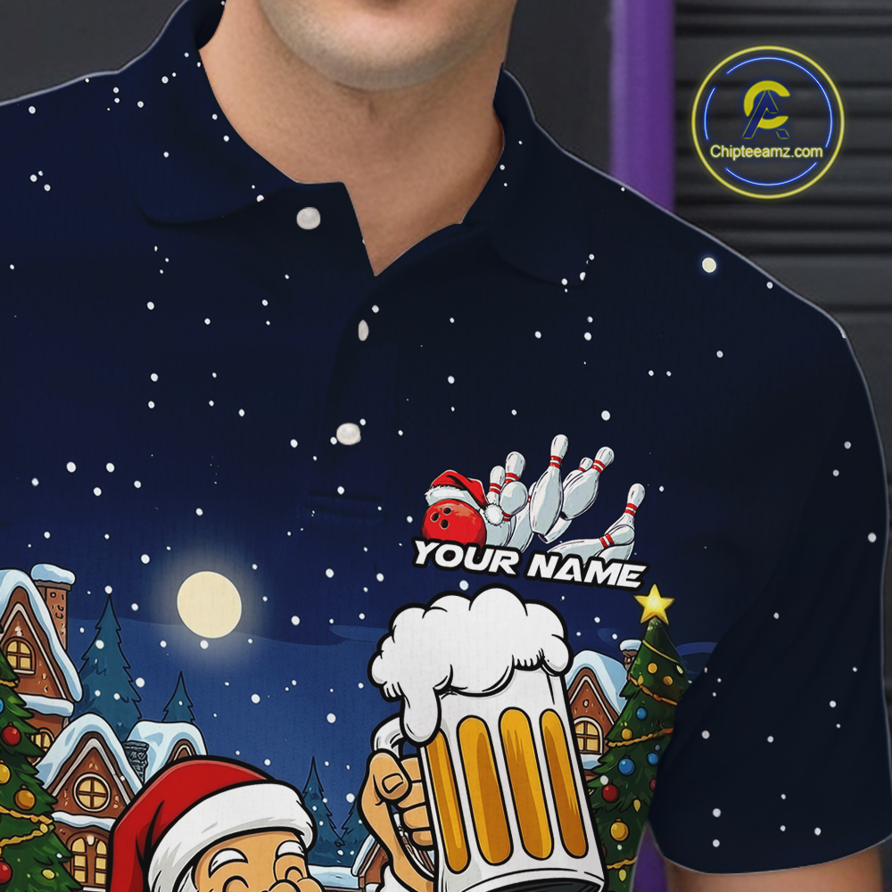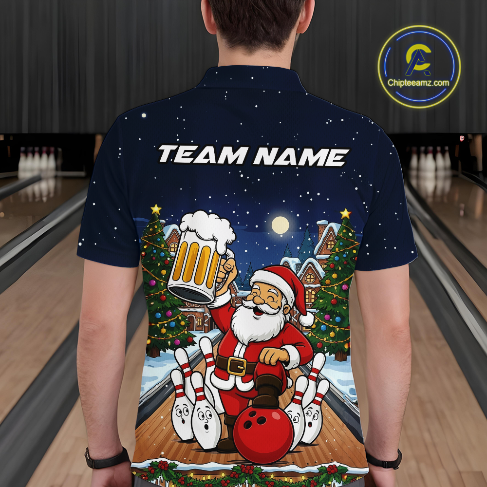 Custom Funny Beer Santa Christmas Bowling Jersey for Men Bowling Team Shirts Polo & 1/4 Zip HNT140