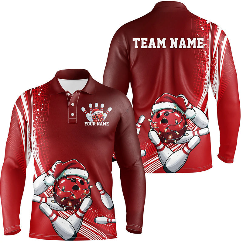 Custom Red Christmas Bowling Shirts For Men, Xmas Bowling Team Uniform Bowler Outfits IPHW7854