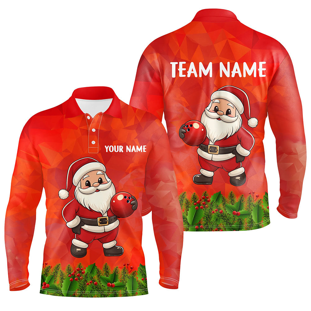 Personalized Funny Santa Christmas Bowling Shirts For Men, Christmas Bowling Shirts Team Uniform | Red NQS9095