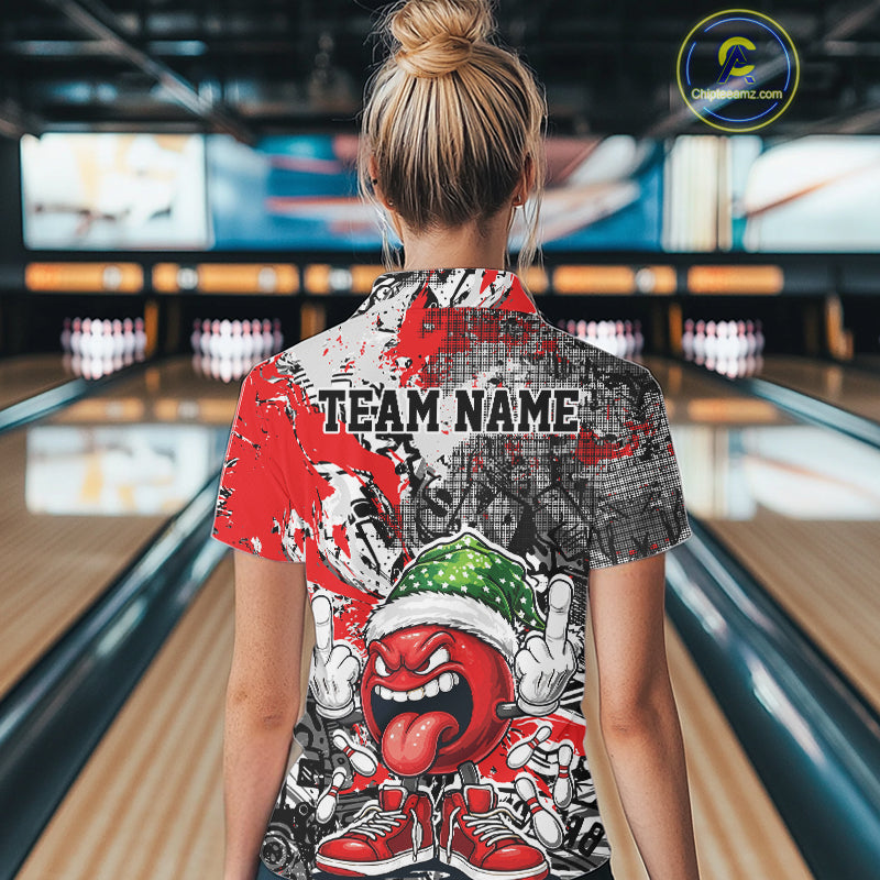 Custom Funny Christmas Bowling Women Polo Shirts, Crazy Bowling Ball Xmas Outfit IPHW10129