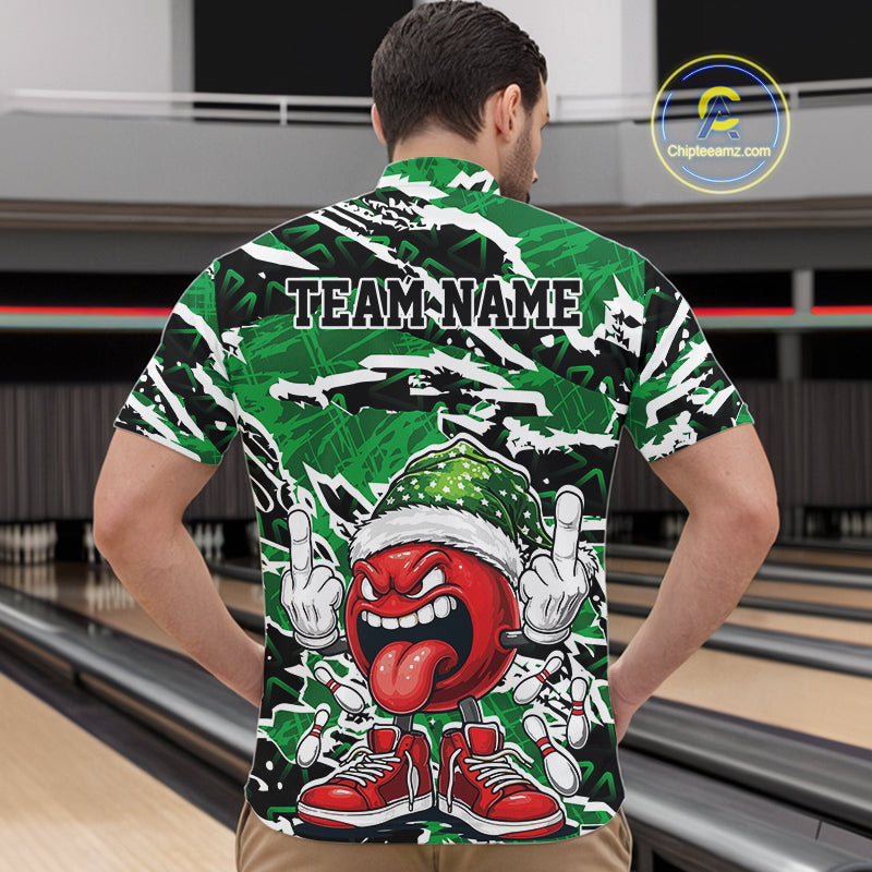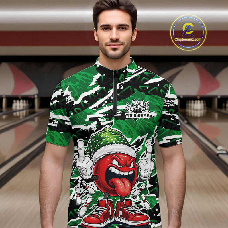 Custom Funny Christmas Bowling Men Quarter-Zip Shirts, Crazy Bowling Ball Xmas Outfit IPHW10132