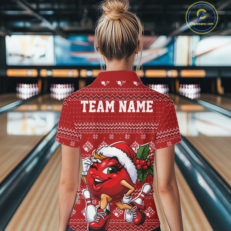 Custom Cute Funny Ladies Christmas Bowling Quarter-Zip Shirts, Women Team Xmas Outfit IPHW10139