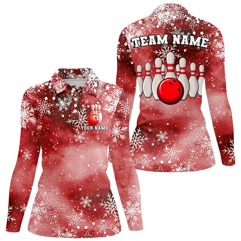 Red Snowflake Christmas pattern Women's Bowling shirt Custom Christmas Team Bowling League Jersey NQS8855