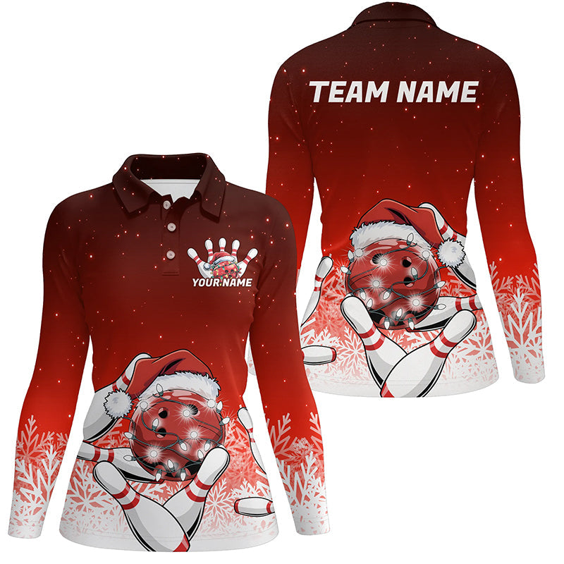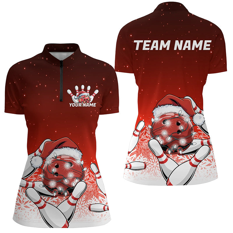 Red Christmas Snowflake Custom Ladies Bowling Shirts, Christmas Bowling League Shirt Outfit IPHW7852