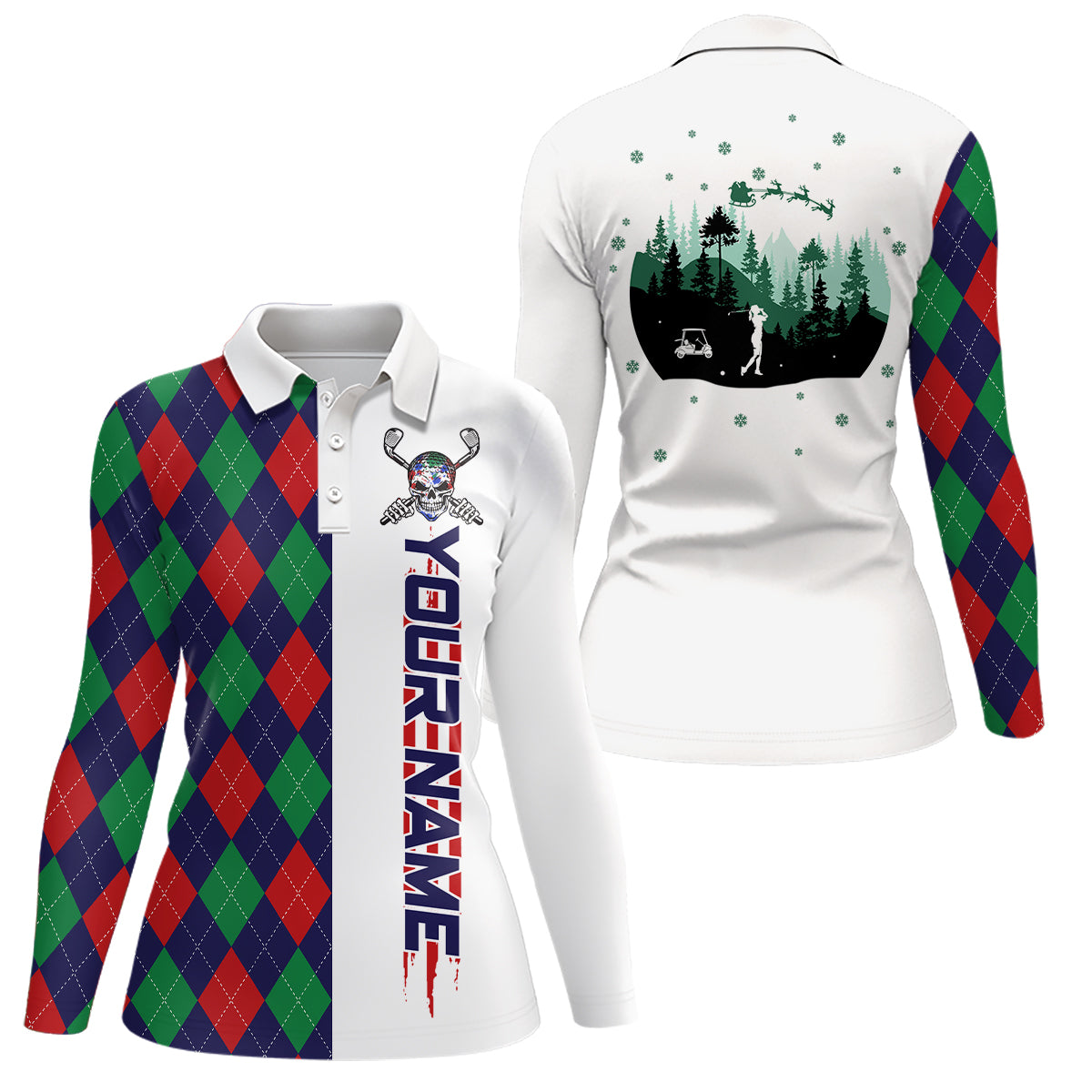 Christmas argyle pattern womens golf polo shirt custom Christmas apparel gift for golf lovers NQS6615