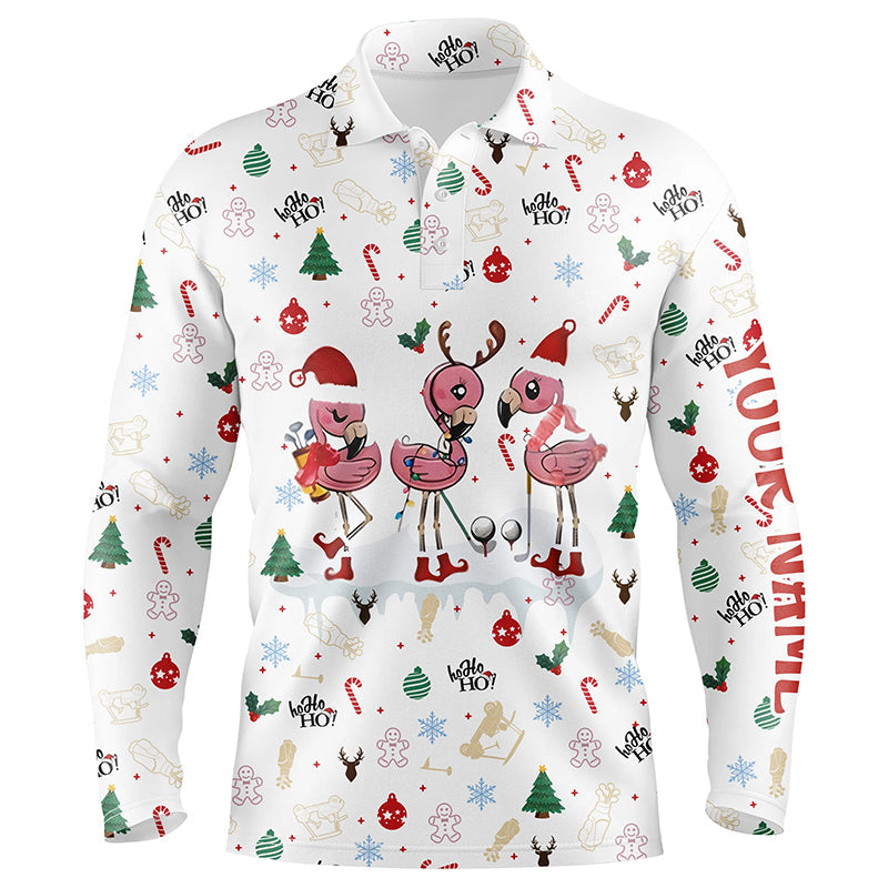 Funny Christmas golf shirts custom white Mens golf polo shirts Flamingo golf friend Christmas gifts NQS6511
