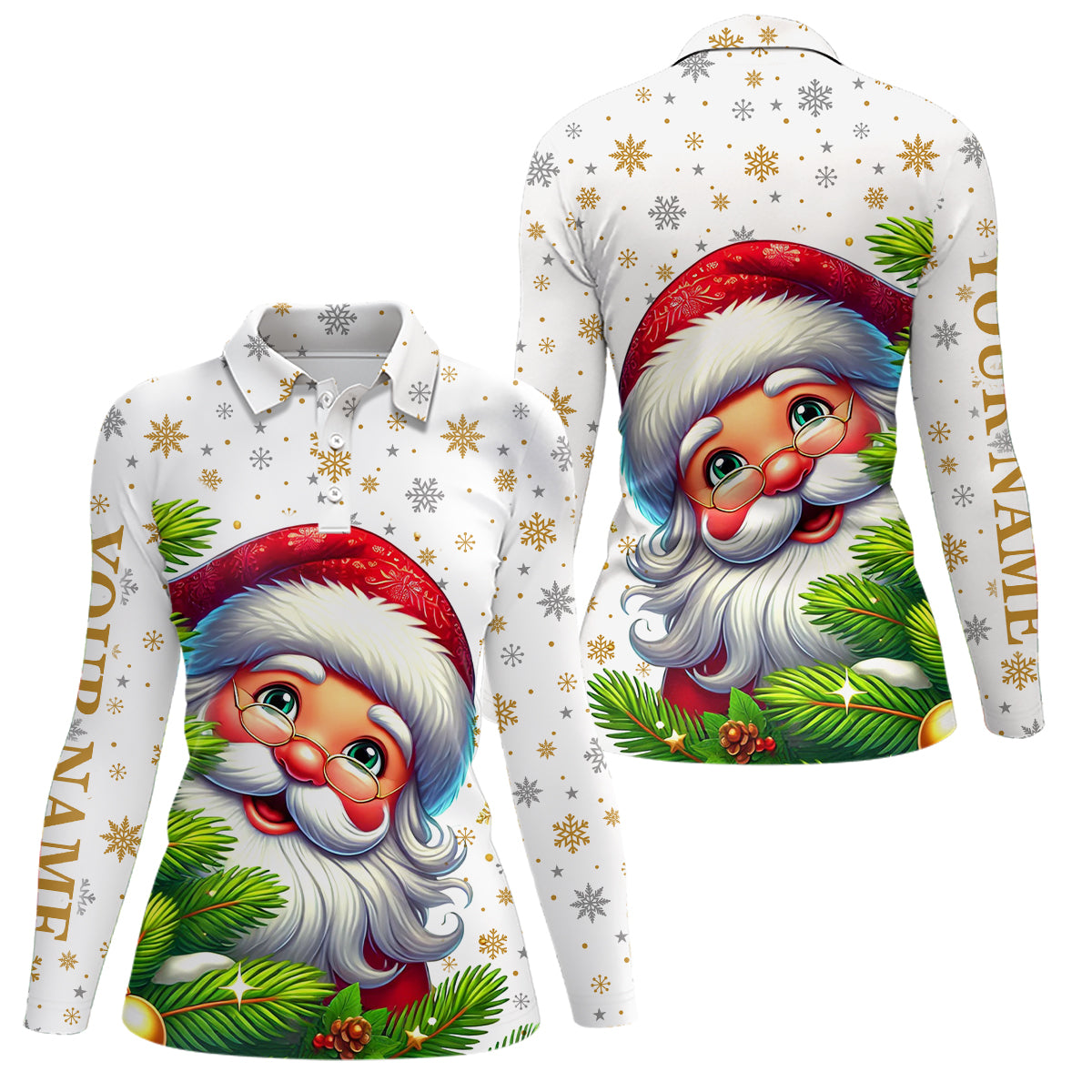 Funny Christmas tree Womens golf polo shirts custom Santa golf Christmas pattern golf attire for women NQS6777