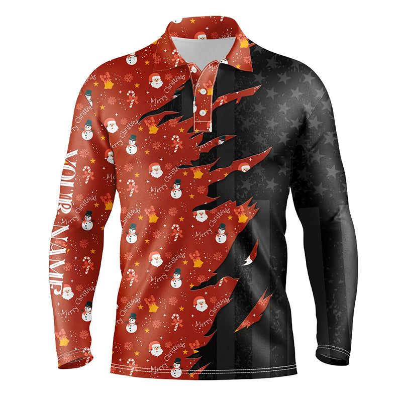 Personalized Mens golf polos shirt custom Christmas pattern black American flag mens golf apparel NQS8931
