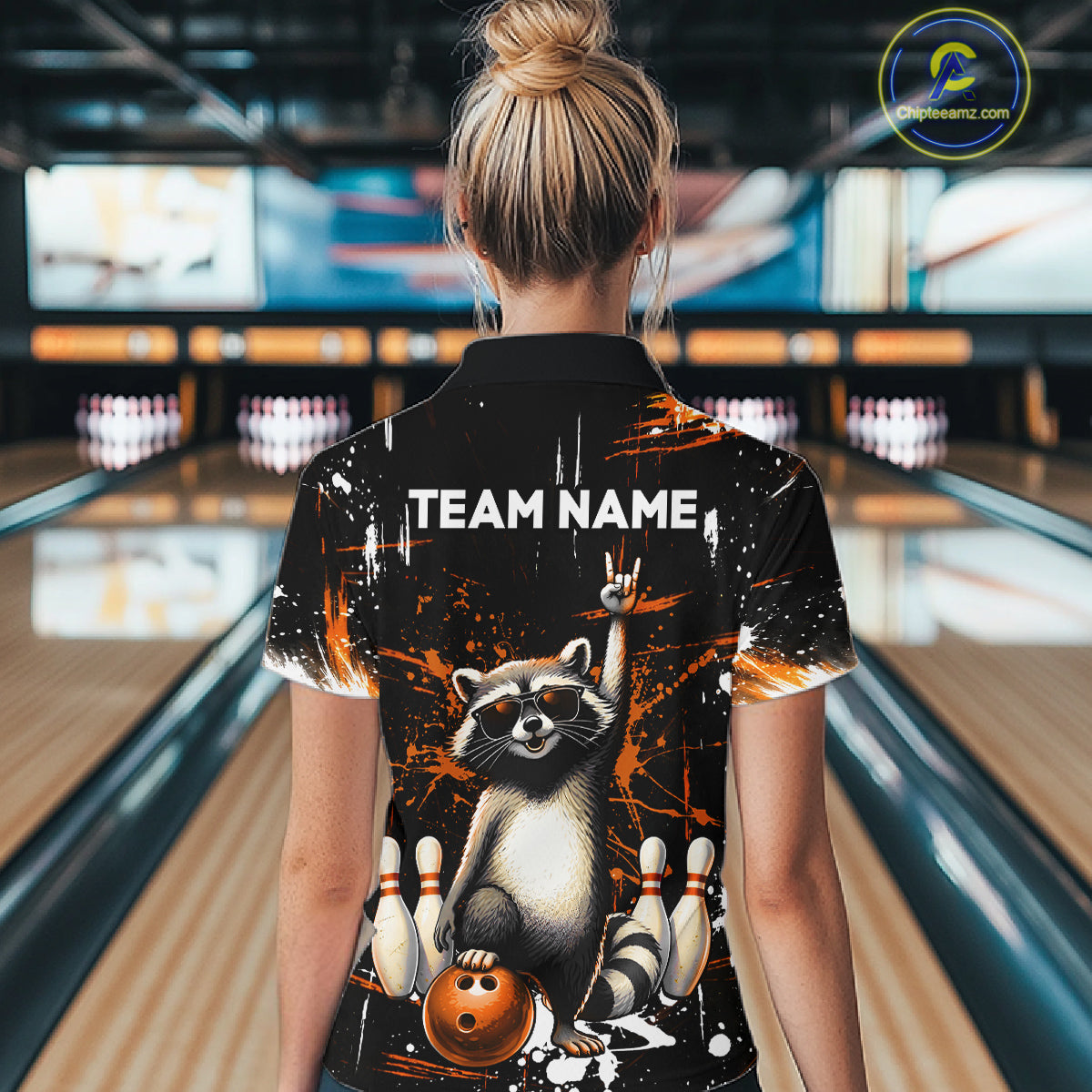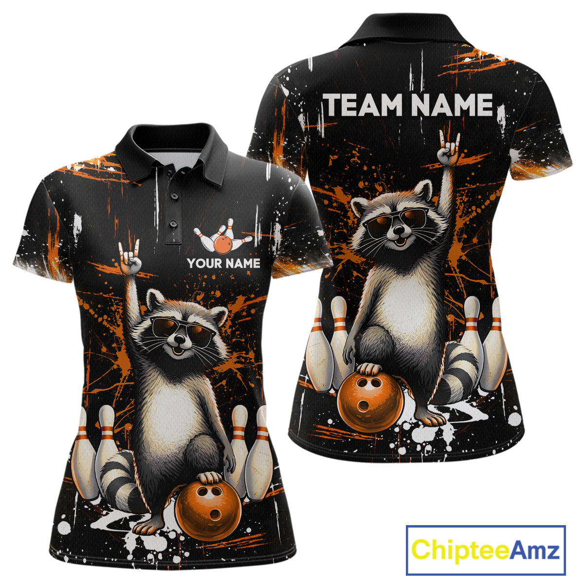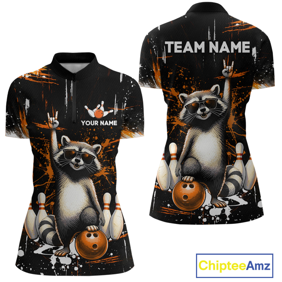 Orange Funny Raccoon Bowling Team Shirt Customized Bowling League Polo & 1/4 Zip Gift for Women QZT852