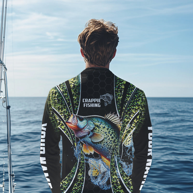 Crappie freshwater fishing black green scales Custom Name sun protection fishing jersey NQS3507
