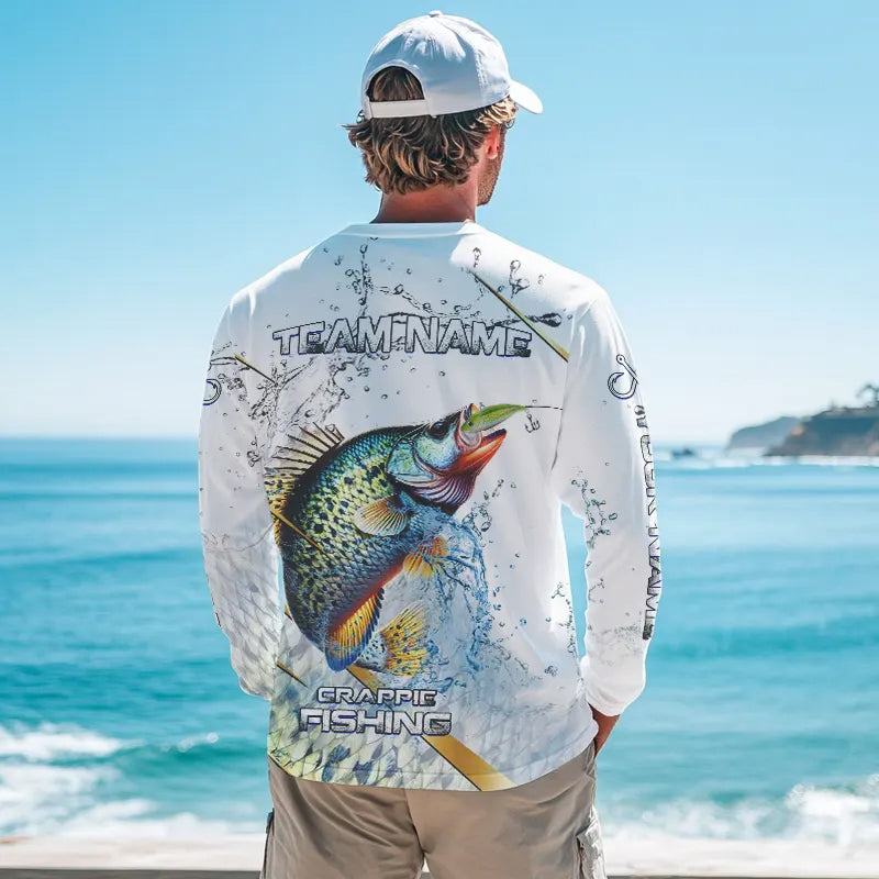 Crappie Green scales water Custom White Long Sleeve Fishing Shirts, Personalized Crappie Fishing Gifts NQS9646