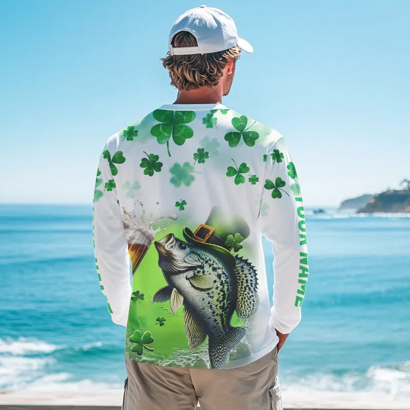 Custom St Patrick's Day Shamprock Crappie Long Sleeve Tournament Fishing Shirts IPHW8388