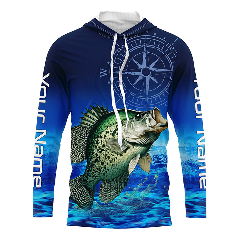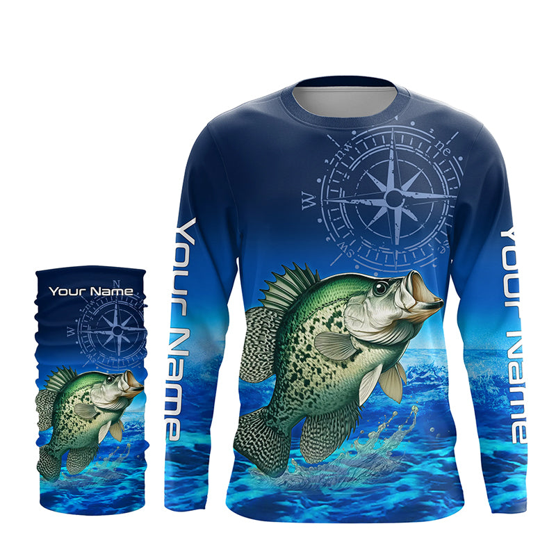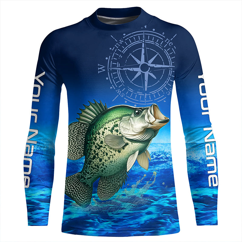 Personalized Crappie Blue Long Sleeve Performance Fishing Shirts, compass Crappie tournament Shirt NQS5983