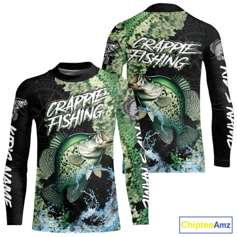Personalized Crappie Fishing green scales compass fishing shirts Custom tournament fishing jerseys NQS11154