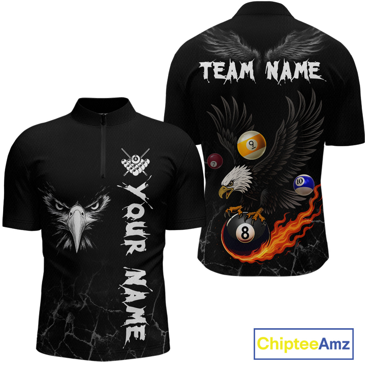 Custom Black Eagle 8 Ball Billiard Shirts for Men Billiard Team Jerseys Polo & 1/4 Zip Shirts NNT52