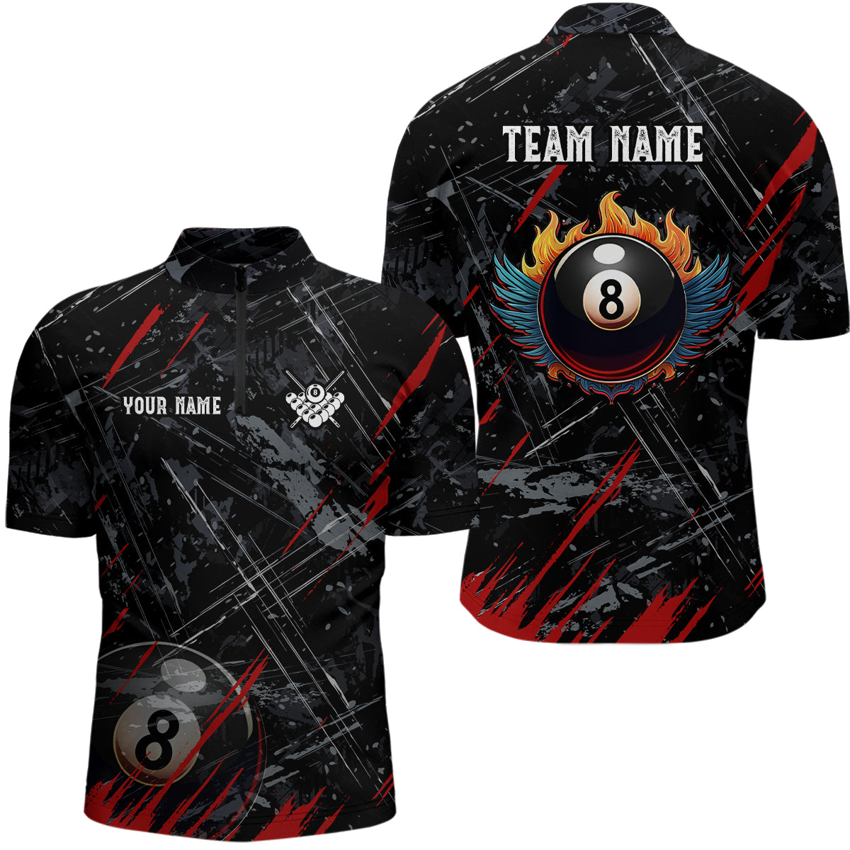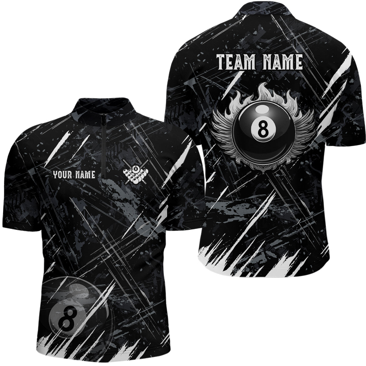 Grunge Ball 8 Billiard Billiard Men Quarter-Zip Shirts Custom Name Billiard Shirt YYD0071