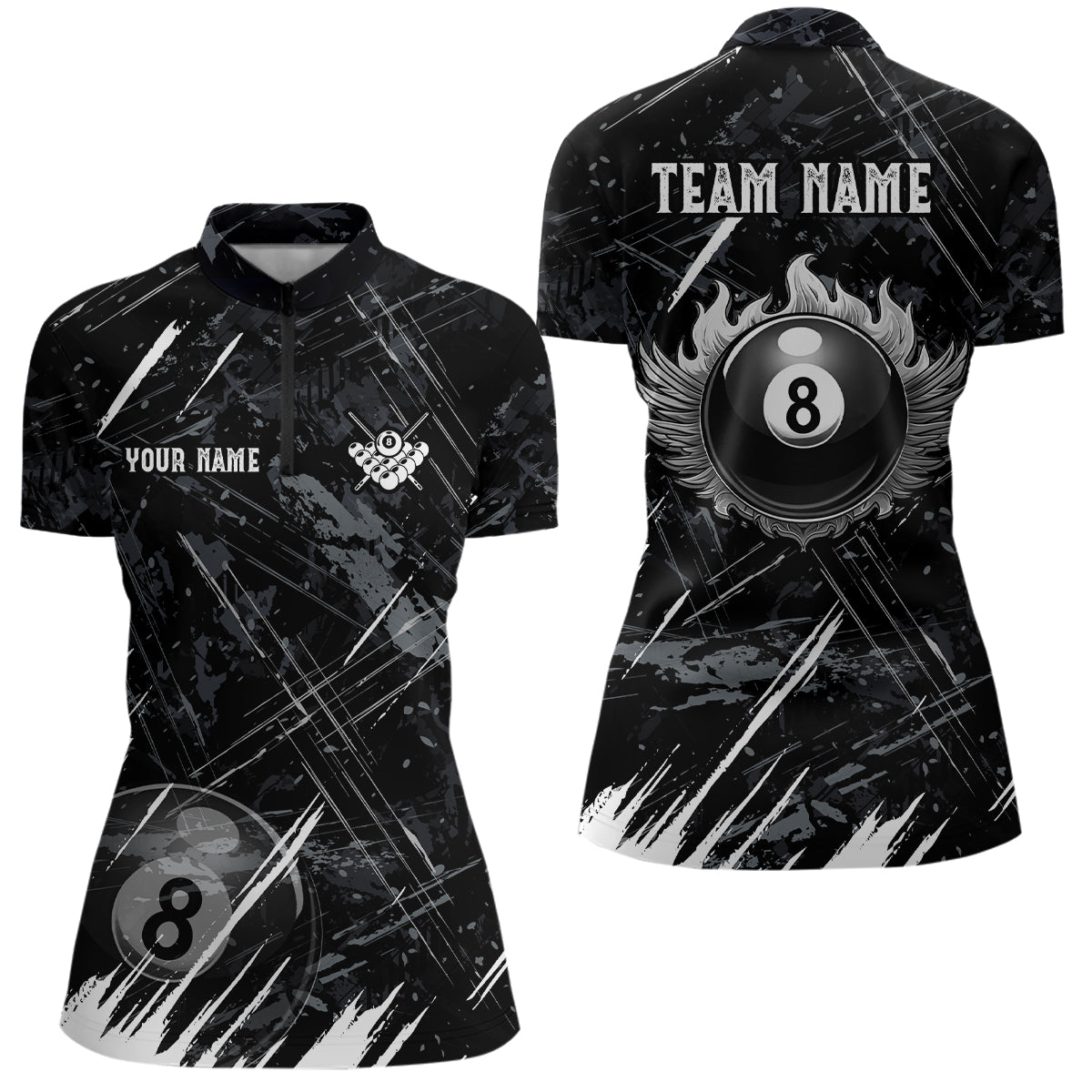 Grunge Ball 8 Billiard Billiard Women Quarter-Zip Shirts Custom Name Billiard Shirt YYD0071
