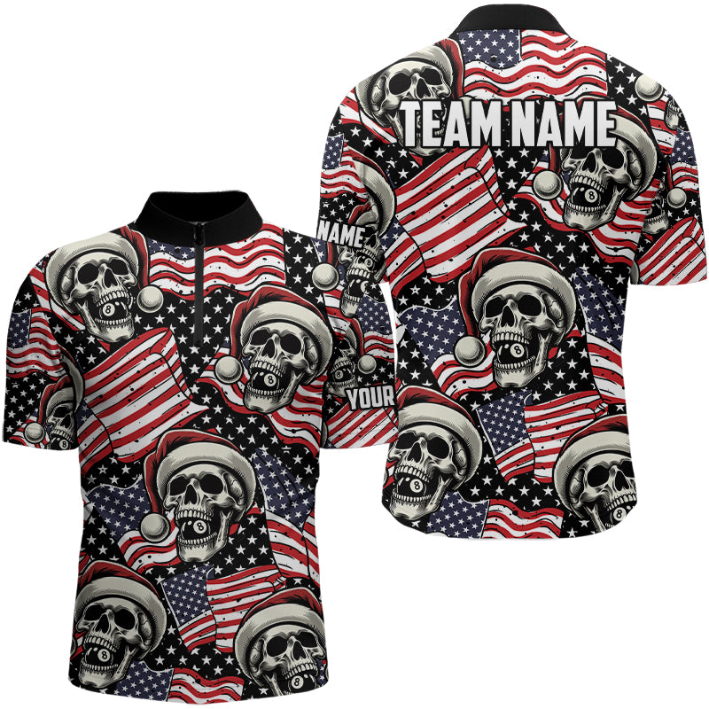 American Flag Santa Skull Custom Christmas Billiard Shirts For Men, Patriotic Xmas Billiard Jersey TDM3127