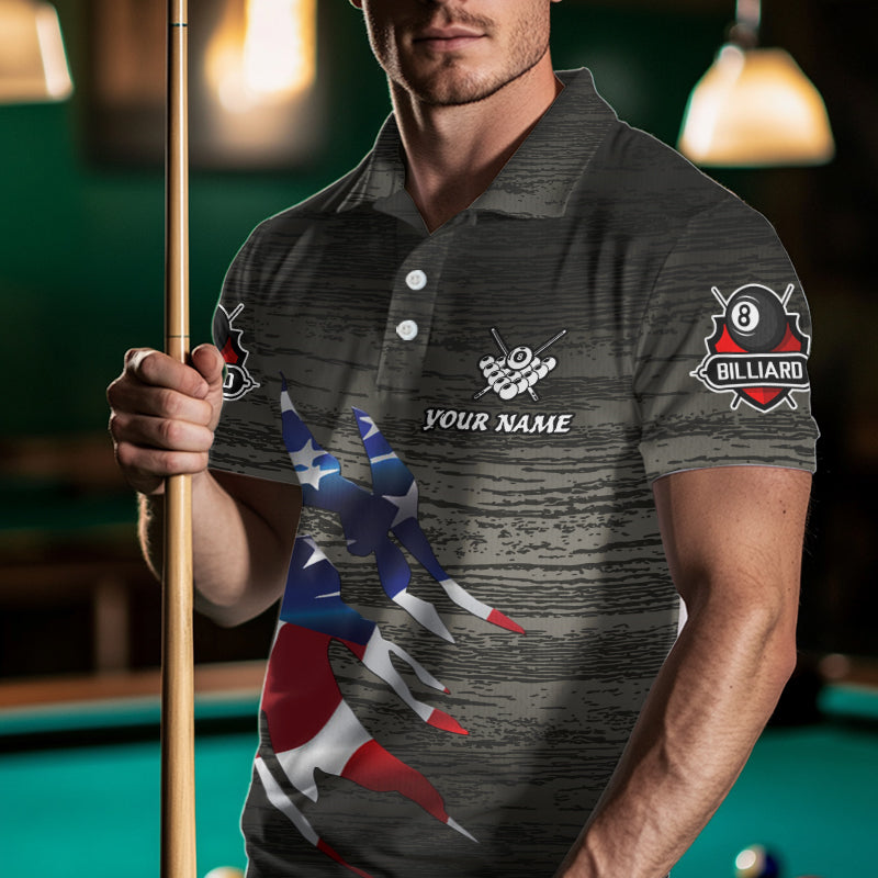 Personalized Grey Grunge American Flag Billiard Shirts For Men Custom Patriotic Billiard Jerseys TDM3379