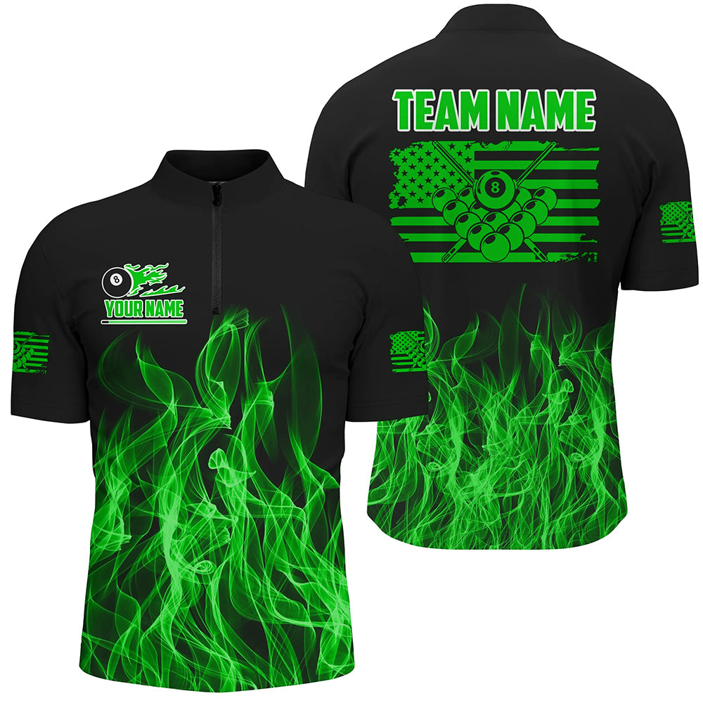 3D Green Flaming American Flag Men Billiard Shirt Custom Patriotic Pool Player Billiard Jersey TDM3452