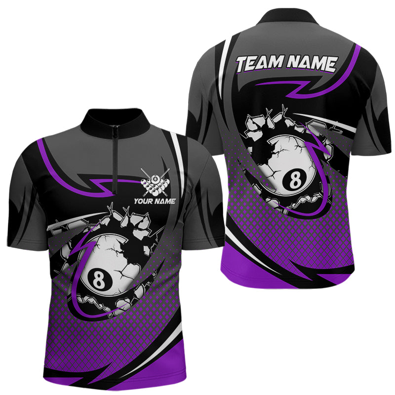 Funny 8 Ball Pool Purple Billiard Jersey For Men Custom Polo & Quarter Zip Billiard Team Shirts TDM3488