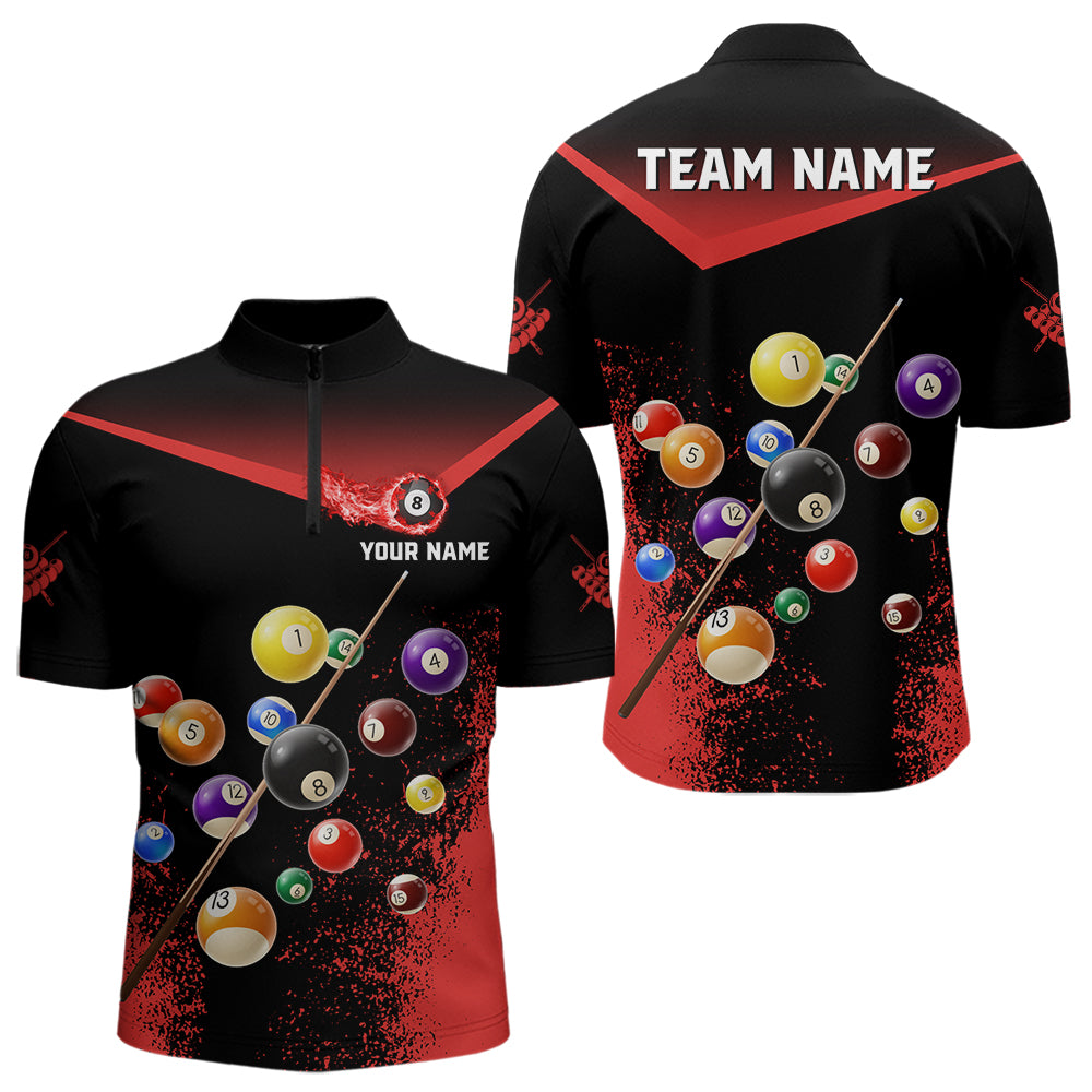 Personalized Grunge Red Black 3D Pool Balls Men Billiard Shirts Custom Billiard Jerseys For Team TDM3512