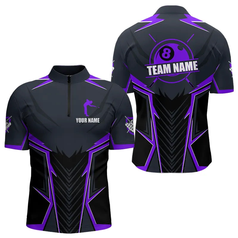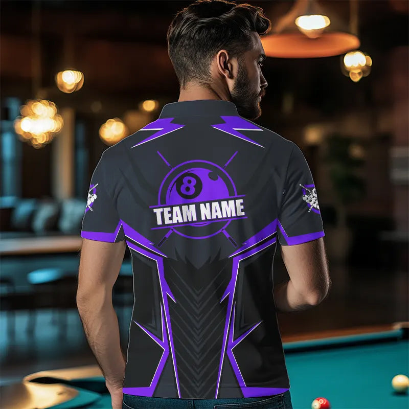 Billiard Jerseys For Men Custom Polo & Quarter-Zip Billiard Team Shirts, 8 Ball Pool Shirt |Purple TDM3532