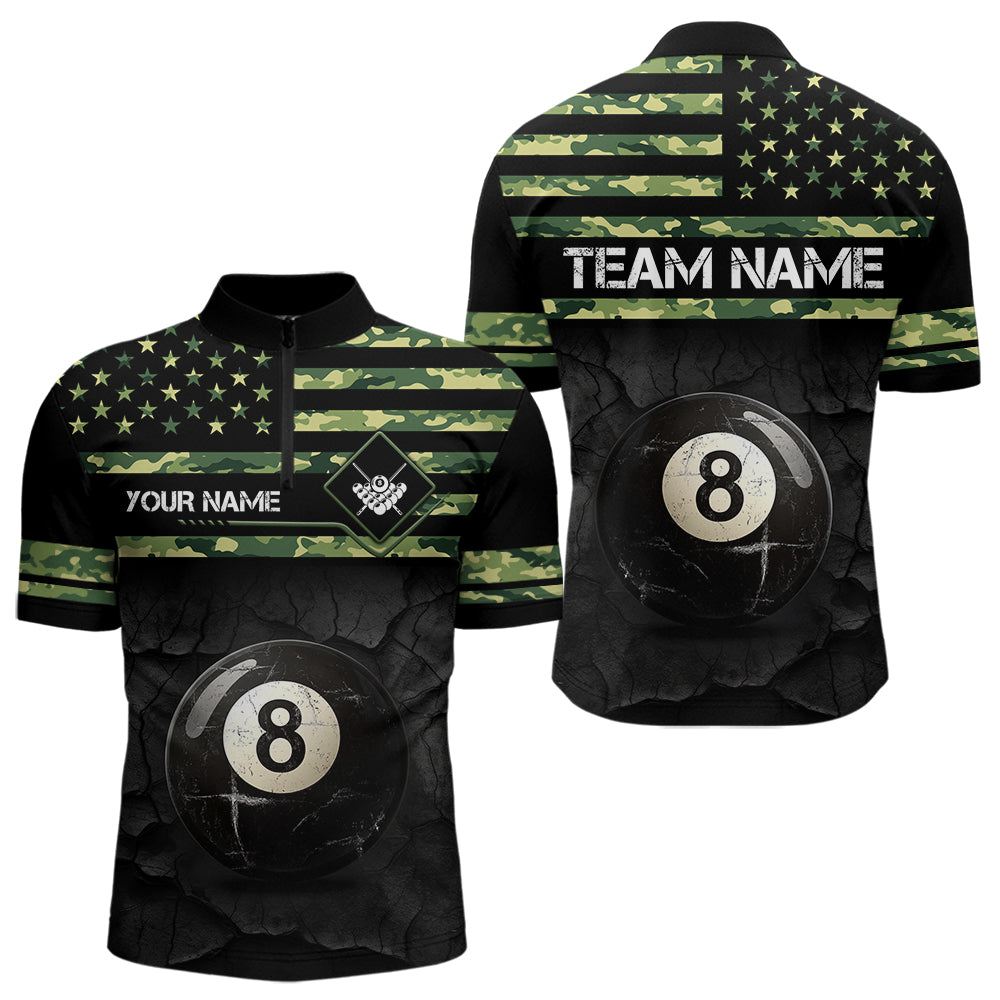 Customized Retro 8 Ball Pool Green Camo US Flag Billiard Shirts For Men, Patriotic Billiard Jerseys TDM3566
