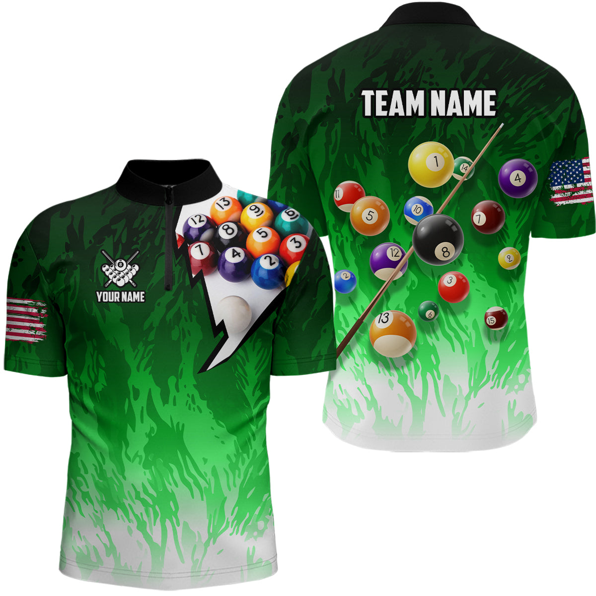 Personalized Green Pool Player Billiard 8 Ball Polo & 1/4 Zip For Men Custom Billiard Shirt Jerseys TDM3657