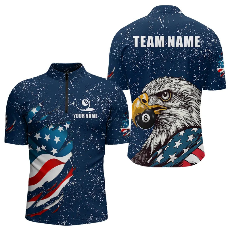 Blue Navy Grunge Eagle American Flag Custom Billiard Shirts For Men, Patriotic Billiard Team Shirts TDM3681