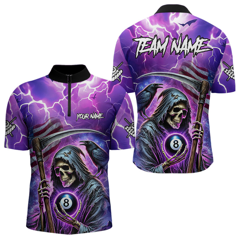 Death Skeleton Purple Galaxy Thunder Lightning Billiard Shirt For Men Custom 8 Ball Billiard Jersey TDM3725