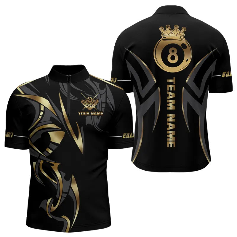 Customized 8 Ball Pool Crown Men Billiard Shirts, Gold And Black Billiard Team Shirt Pool Jerseys TDM3769