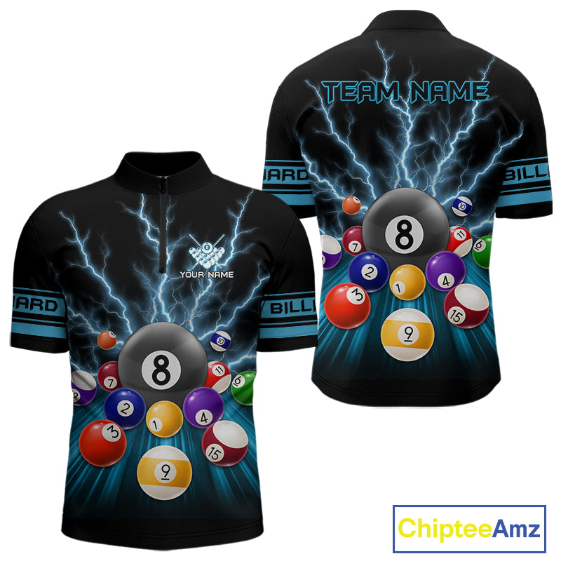Blue Glowing Electric Billiard Shirts For Men Custom Billiard Jersey Team Polo & Quarter Zip TDM3818