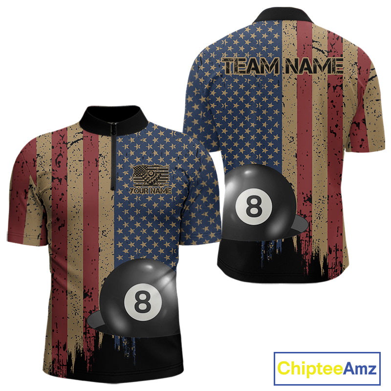 Vintage American Flag 8 Ball Billiard Shirts For Men Custom Patriotic Pool Team Jerseys TDM3998
