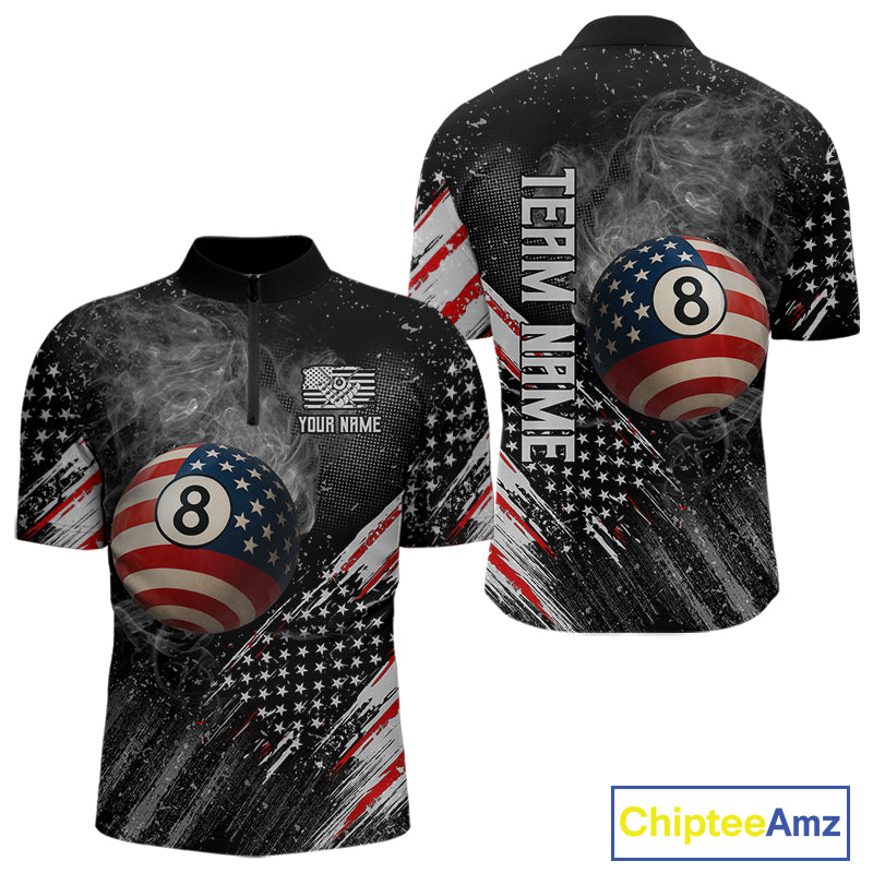 Personalized Grunge American Flag Men's Billiard Shirts Custom 8 Ball Pool Smoke Team Jerseys TDM4054