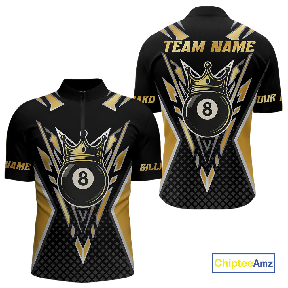 Customized 8 Ball Pool Crown Men Billiard Shirts, Gold And Black Billiard Team Shirts, Pool Jersey TDM4078