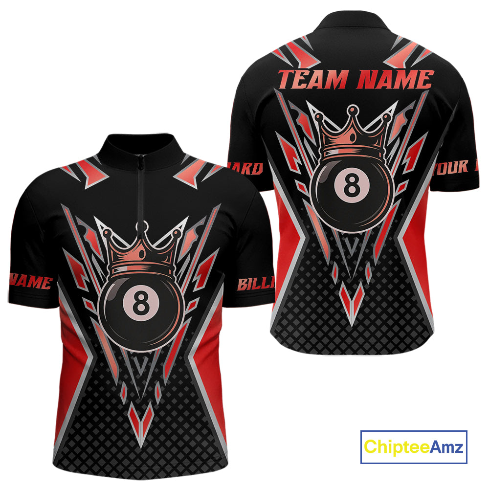 Customized 8 Ball Pool Crown Men Billiard Shirts, Red And Black Billiard Team Shirts, Pool Jersey TDM4079