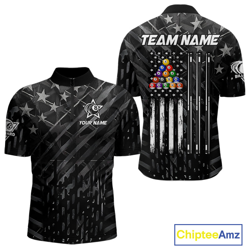 Black US Flag 8 Ball Billiard Shirts For Men Custom Patriotic Billiard Team Shirts, Pool Jerseys TDM4084