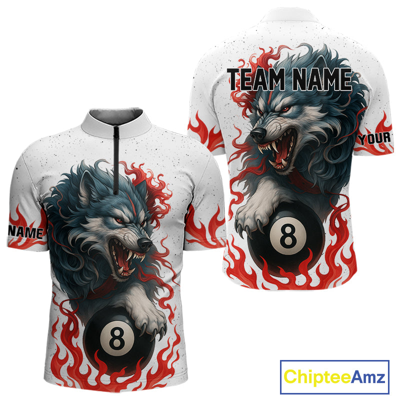 Personalized Wolf Flaming 8 Ball Billiard Shirts For Men Custom Billiard Pool Team Jersey |Red TDM4111
