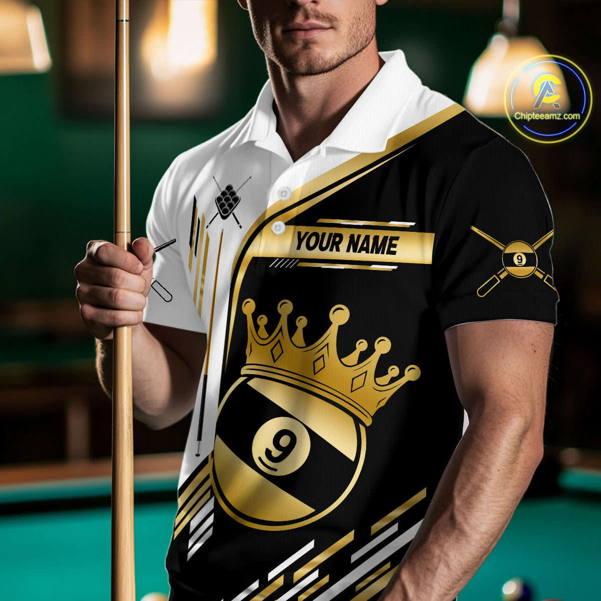 Personalized Golden 9 Ball Pool Crown Billiard Shirt For Men Custom Billiard Team Jerseys Uniform TDM4183