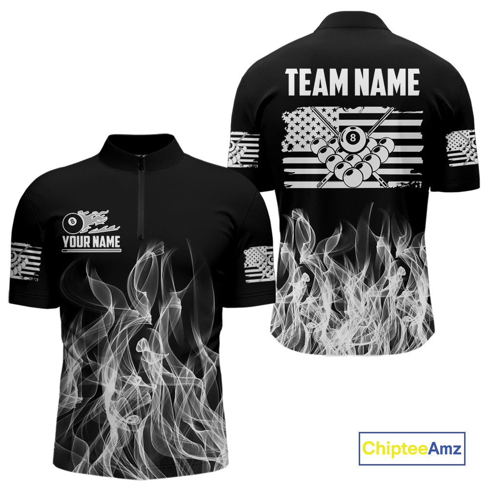 White Black Flaming American Flag Men Billiard Shirt Custom Patriotic Pool Player Billiard Jersey TDM4195