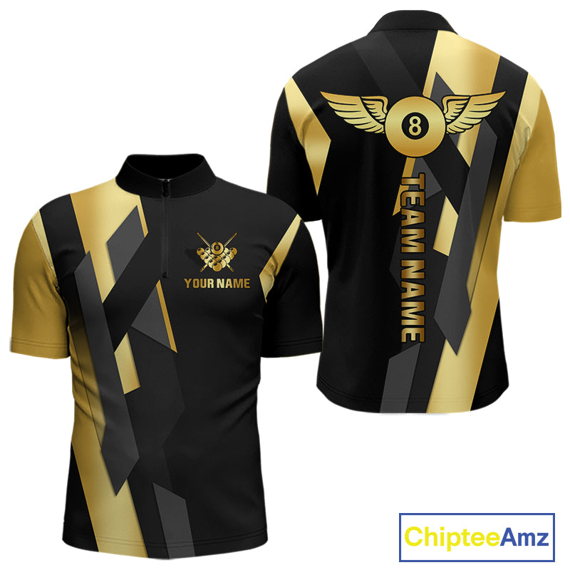 Black And Golden 8 Ball Wings Billiard Shirt For Men Custom Pool Team Jersey Polo & Quarter Zip TDM4203
