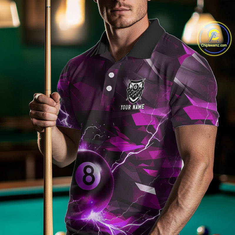Purple 8 Ball Pool Thunder Lightning Billiard Shirt For Men Custom Billiard League Team Jerseys TDM4374