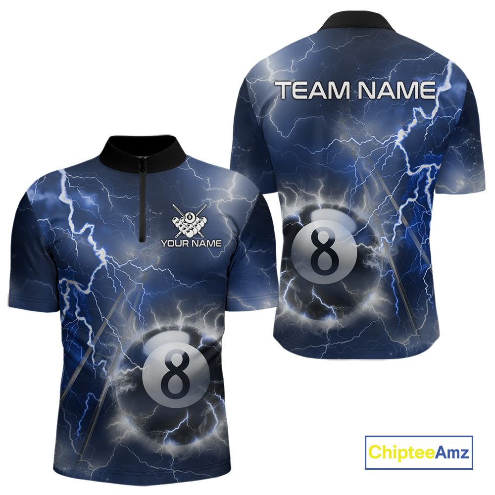 Personalized Blue Thunder Lightning 8 Ball Billiard Shirt For Men Custom Pool Team Jerseys TDM4462