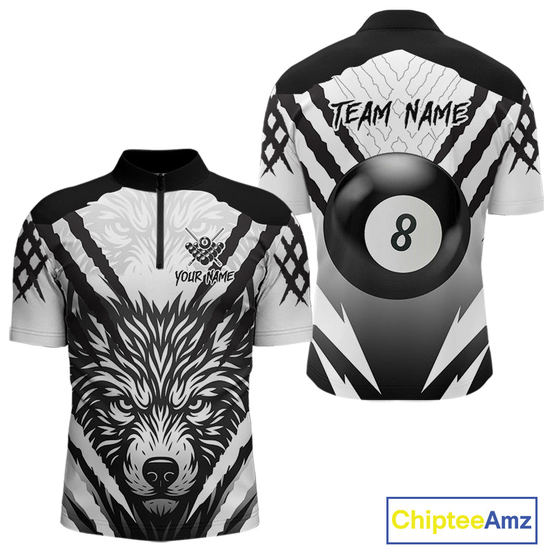 White Black Billiard Jersey Polo & 1/4 Zip Custom 8 Ball Pool Wolf Billiard Team Shirt For Men TDM4518